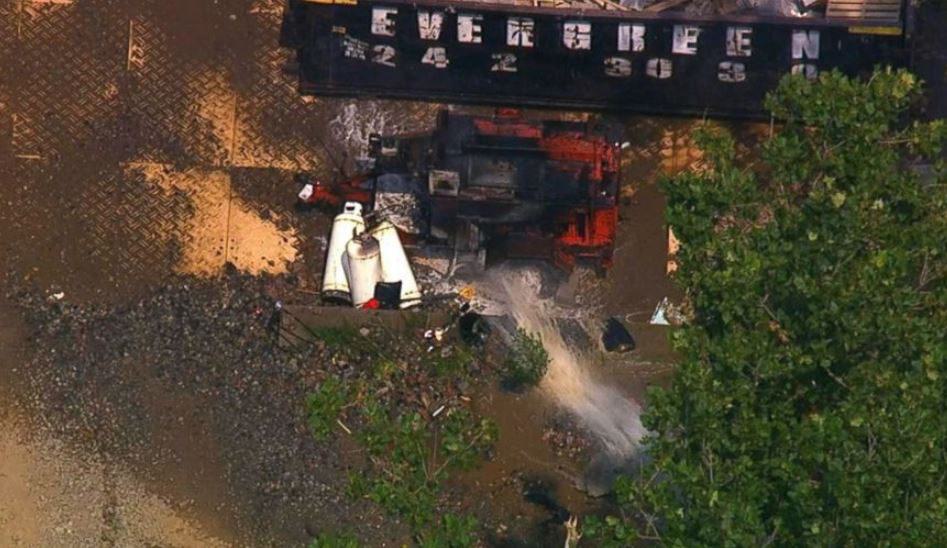 Firefighters ensure the propane tanks that caught fire were completely extinguished (photo courtesy ABC News).