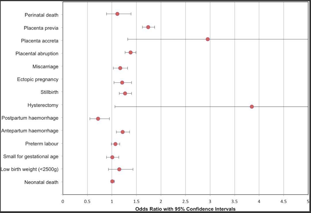 But C-sections are not without risks, especially for future pregnancies, noted the article. Incidences of placenta previa, where the placenta covers the cervical opening, as well as miscarriages, increase after a C-section. There is also an increased risk for placenta abruption, where the placenta detaches from the womb, and placenta accrete where it doesn’t easily detach during delivery. The latter requires a hysterectomy. In addition, the scar tissue from a C-section increases risks in subsequent deliveries, from bleeding to bowel or bladder injuries.