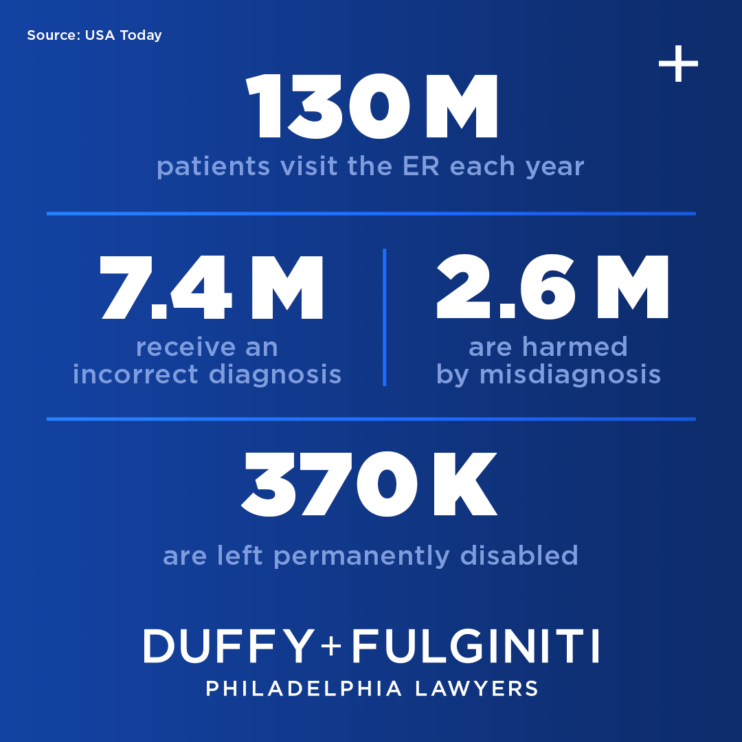 Of the 130 million visits to the ER each year, 7.4 million patients receive an incorrect diagnosis, 2.6 million patients are harmed by misdiagnosis that could have been prevented, and 370,000 patients are left permanently disabled.