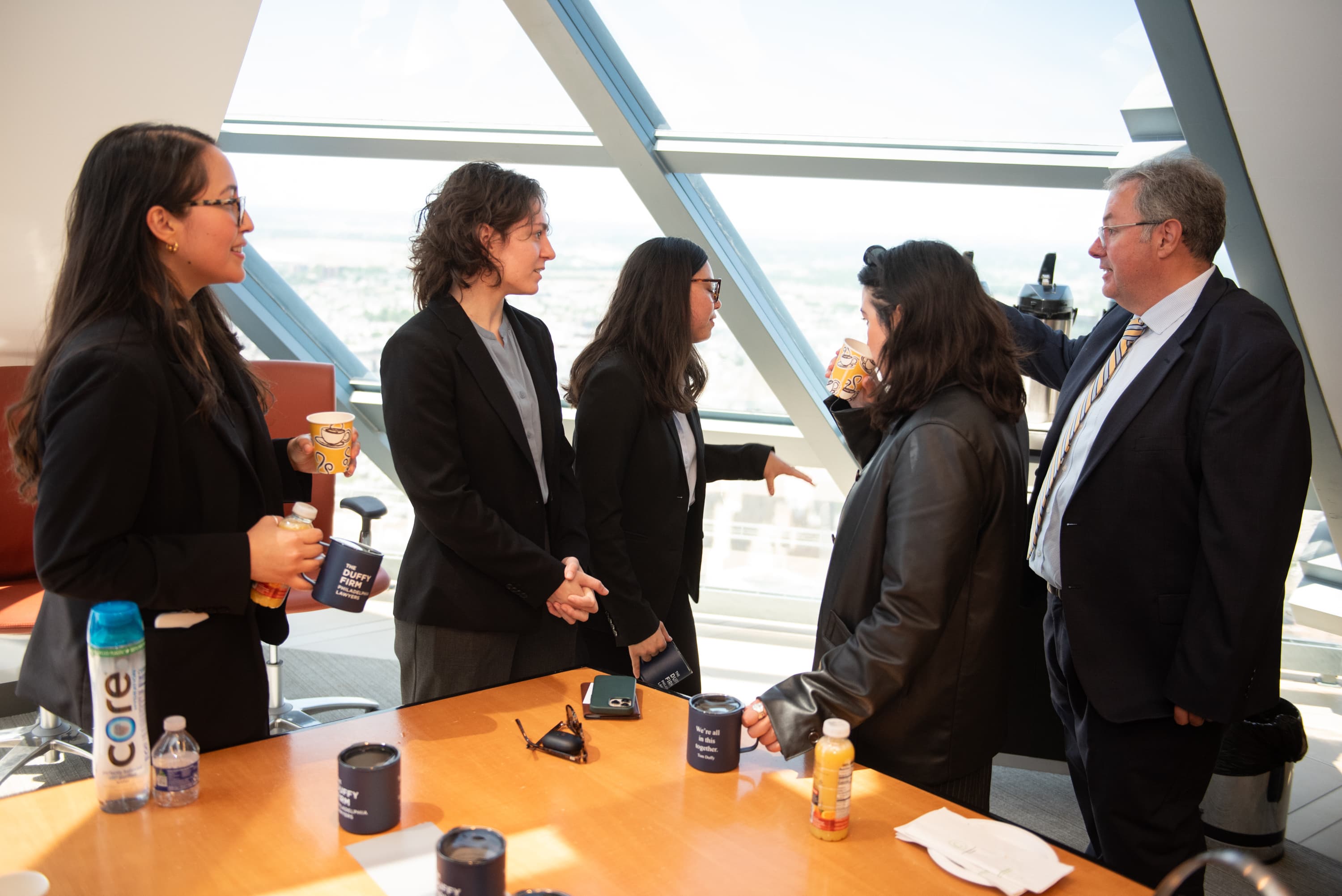 Tom Duffy congratulates the recipients of the 2025 Temple Law Duffy Fellowship. Photo credit: Rick Kauffman, Temple University.