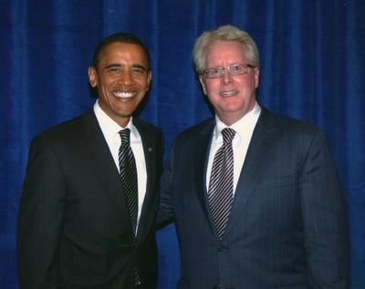 Tom Duffy and U.S. President Barack Obama are pictured here at a recent dinner in Philadelphia hosted by United States Senator Arlen Specter.